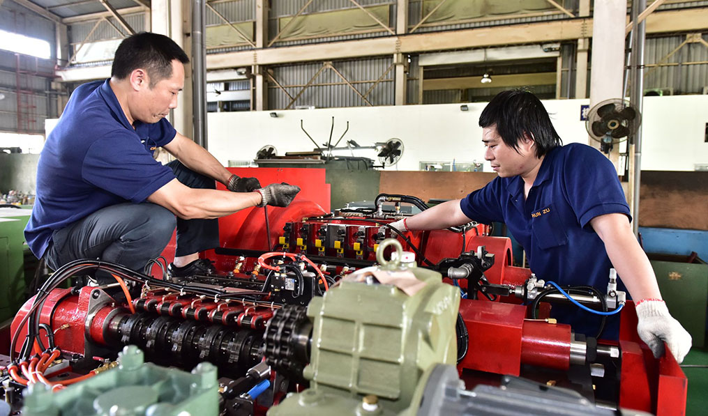 本公司機台組裝全部在廠內進行,裝配團隊分為八組,分工各式機台組裝。