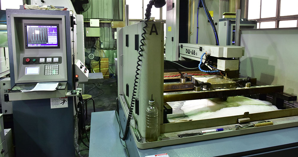本公司有自行加工精密機件的能力,廠內的加工機有CNC數控線切割機、各式鎕銑床、CNC立式綜合加工機、精密車床等。